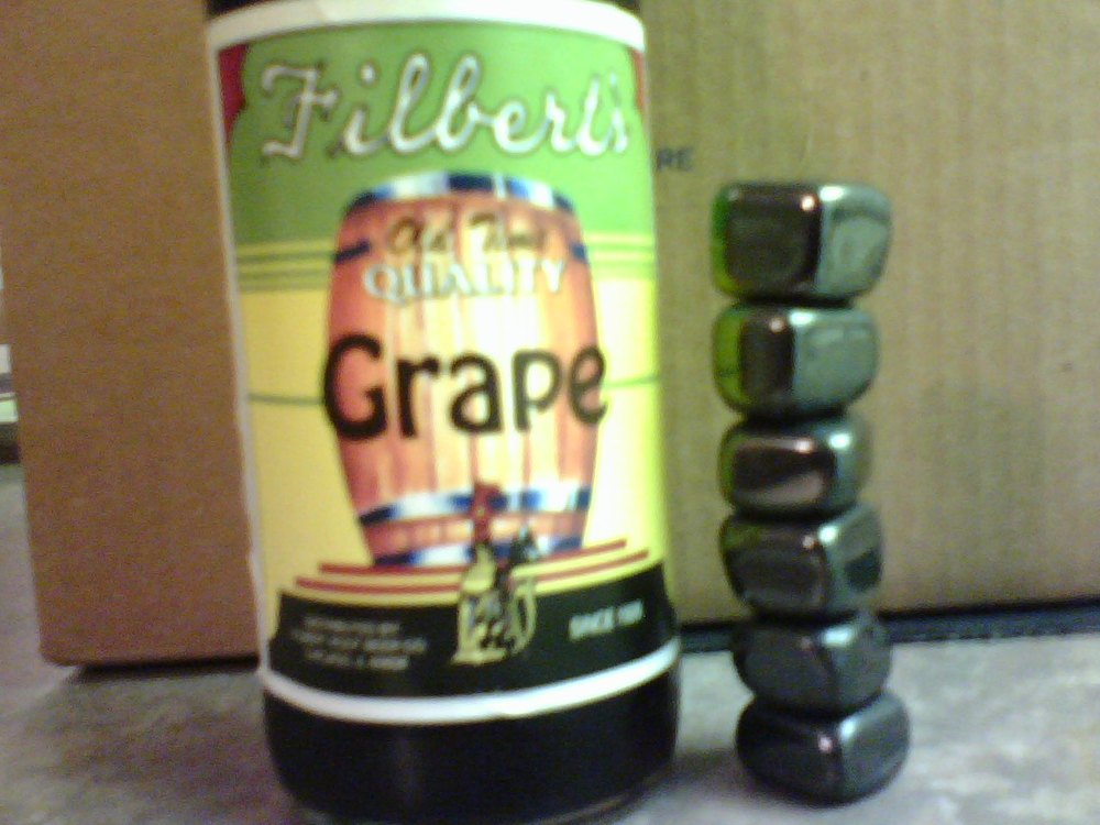 Smells: vaguely grapity. Tastes: vaguely grapity. Or, if I was in a more sarcastic mood: grape-tinged dishwater. Seriously, I expected a lot more grape out of that barrel of grape on the label. I expected to be hit in the face with a sock full of grape. A blackjack right to the forehead, filled with grapes. A grapejack. “WOO!” I was prepared to say, “This Filbert’s Old Time Quality Grape Soda is motherfuckin’ flavorful! There’s some goddamn grape flavor in this grape soda! Fuckin-A!”But no. No, it was not to be.