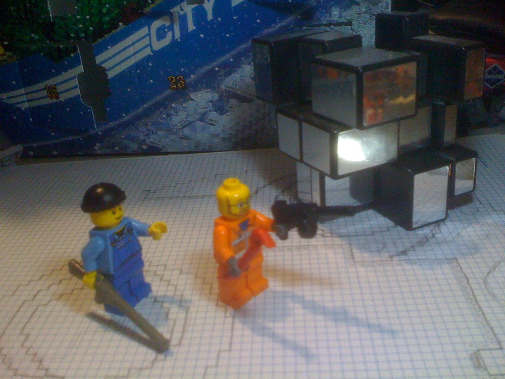 Tinyfiretruckbot: “Bwooooooooooooooooop!“Cindy: “How are we doing, Pie-in-the-sky?”
